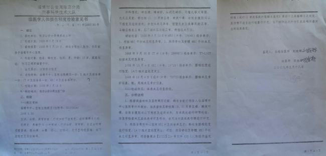 为了维护自己的合法权益,他先后到省纪委、省市区各级信访部门进行上访,写实名举报信。迫于信访的压力,淄博市法医伤害鉴定中心为他出具了法医学人体损伤程度重新检验意见书(淄法鉴【2010】字第23236号)。但是,韩长吉认为,淄博市公安局刑警支队法医队副大队长刘长清,伙同其他四名法医,故意将他右腿被打成神经源性瘫痪的原因,定性为腰椎间盘突出造成的,并且只字不提右眶内壁骨折这个伤情,刻意不采信中医院、骨科医院法医的检查结果,以及中心医院的漏诊诊断书及漏诊证明,因为这些都记载了他右侧眶内壁骨折这个事实。