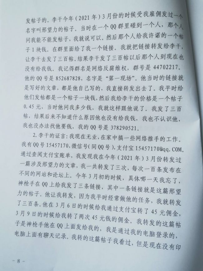 纵观全案:该判决书长达24页,16份证言证词中有8份证言出自息县警务人员,3份证言出自息县法院法官,2份证言出自于社区居委会村干部,2份证言出自网络推手,1份证言出自邢望力的父亲吴德生。