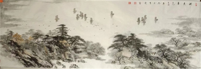 程吉虎老师笔下的山水,既源自于传统,又是传统的发展,在抒情性的笔情墨趣中展露出山川朝霞的绚丽,更着意于人情、心境与诗意的表达。而他现在的作品中却更多的是隽婉中释放着大气,大气中保留着隽婉,像一对完美的矛盾体,更恰切地说是一种绝妙的阴阳结合。加上苍茫浑朴,自成一体,更显出作品风格的端庄、厚重、浑朴、天然、大气。