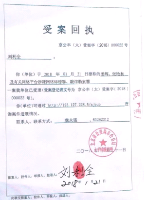 辽宁专案组去山东核实此案几天后,山东桓台县公安局又给专案组相关负责人来了电话解释说当时的立案决定书和立案告知书是因为桓台县公安局电脑出了故障,自己打出来的立案决定书和立案告知书,并不是公安机关工作人员操作所致,是电脑病了。我也因此事与桓台县公安局多次电话取得联系,询问案件的进展情况,但桓台县公安局只说抓紧审理、抓紧查办、高度重视,说为此桓台县委还成立了特别专案组,要求针对此案必须及时抓捕并积极返脏,但至今为止没听到任何答复。